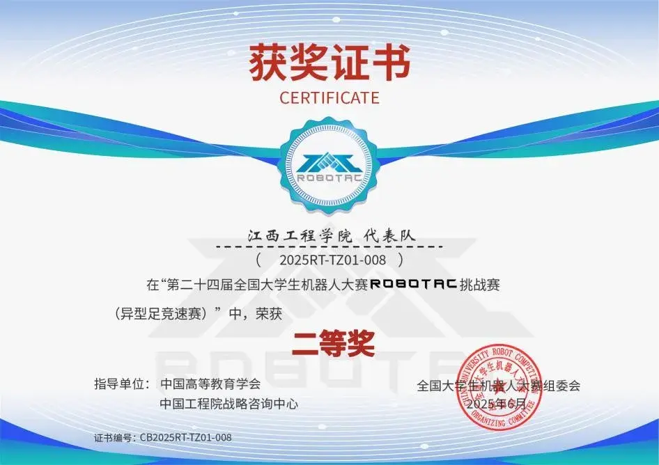6月23日至26日,第二十四屆全國(guó)大學(xué)生機(jī)器人大賽ROBOTAC賽事在煙臺(tái)市圓滿舉行,賽項(xiàng)匯聚了北京科技大學(xué)、天津大學(xué)、廈門大學(xué)等全國(guó)71所高校的183支精英機(jī)器人戰(zhàn)隊(duì)同臺(tái)競(jìng)技。經(jīng)過(guò)四天緊張而激烈的角逐,江西工程學(xué)院人工智能與數(shù)據(jù)科學(xué)學(xué)院的機(jī)器人競(jìng)賽團(tuán)隊(duì)表現(xiàn)優(yōu)異,斬獲異形足競(jìng)速賽全國(guó)二等獎(jiǎng)、第一視角對(duì)抗賽及人形功夫搏擊賽全國(guó)三等獎(jiǎng),實(shí)現(xiàn)了學(xué)校在該賽事中的新突破,在全國(guó)賽場(chǎng)上留下了閃亮的“江工印記”。
