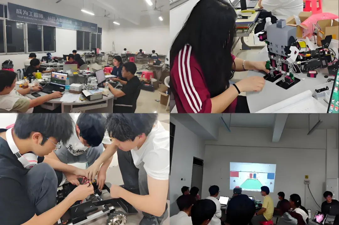 自2024年10月“天啟戰(zhàn)隊(duì)”組建完成,在學(xué)院機(jī)器人工程教研室老師的指導(dǎo)下,隊(duì)員們利用課余時(shí)間,通過(guò)研讀規(guī)則、確定方案、擬畫圖紙、實(shí)際制作、模擬訓(xùn)練等方面不斷提升機(jī)器人的實(shí)戰(zhàn)能力。指導(dǎo)老師悉心引導(dǎo)學(xué)生,從完整流程到任務(wù)分析、方案設(shè)計(jì)、制作加工、程序編寫、裝配調(diào)試、模擬練習(xí)、對(duì)抗競(jìng)技等機(jī)器人開發(fā)應(yīng)用各個(gè)環(huán)節(jié),最終設(shè)計(jì)了六足異型機(jī)器人和人形功夫搏擊機(jī)器人競(jìng)賽機(jī)器人,并積極參加本次第一視角對(duì)抗賽、異型足競(jìng)速賽和人形功夫搏擊賽的三個(gè)賽項(xiàng),與眾多高校強(qiáng)隊(duì)同場(chǎng)競(jìng)技。