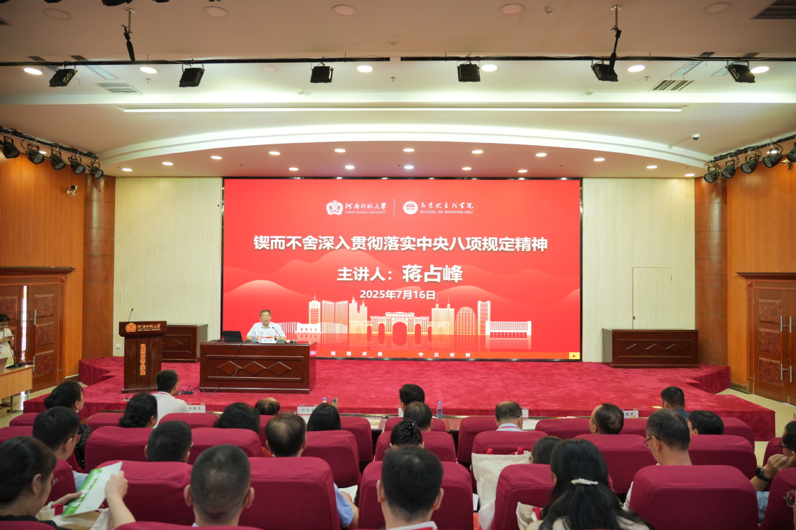 會上,河南師范大學(xué)馬克思主義學(xué)院黨委書記、院長蔣占峰受邀作《鍥而不舍深入貫徹中央八項規(guī)定精神》專題輔導(dǎo)報告,重點闡釋了中央八項規(guī)定與八項規(guī)定精神的區(qū)別、違反中央八項規(guī)定精神的具體表現(xiàn)及深入貫徹學(xué)習(xí)的實踐要求,為參會人員深化思想認識、強化作風(fēng)建設(shè)提供了針對性指導(dǎo)。