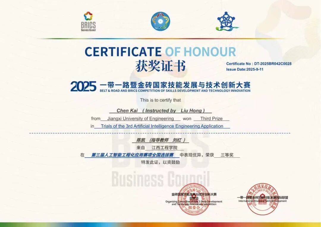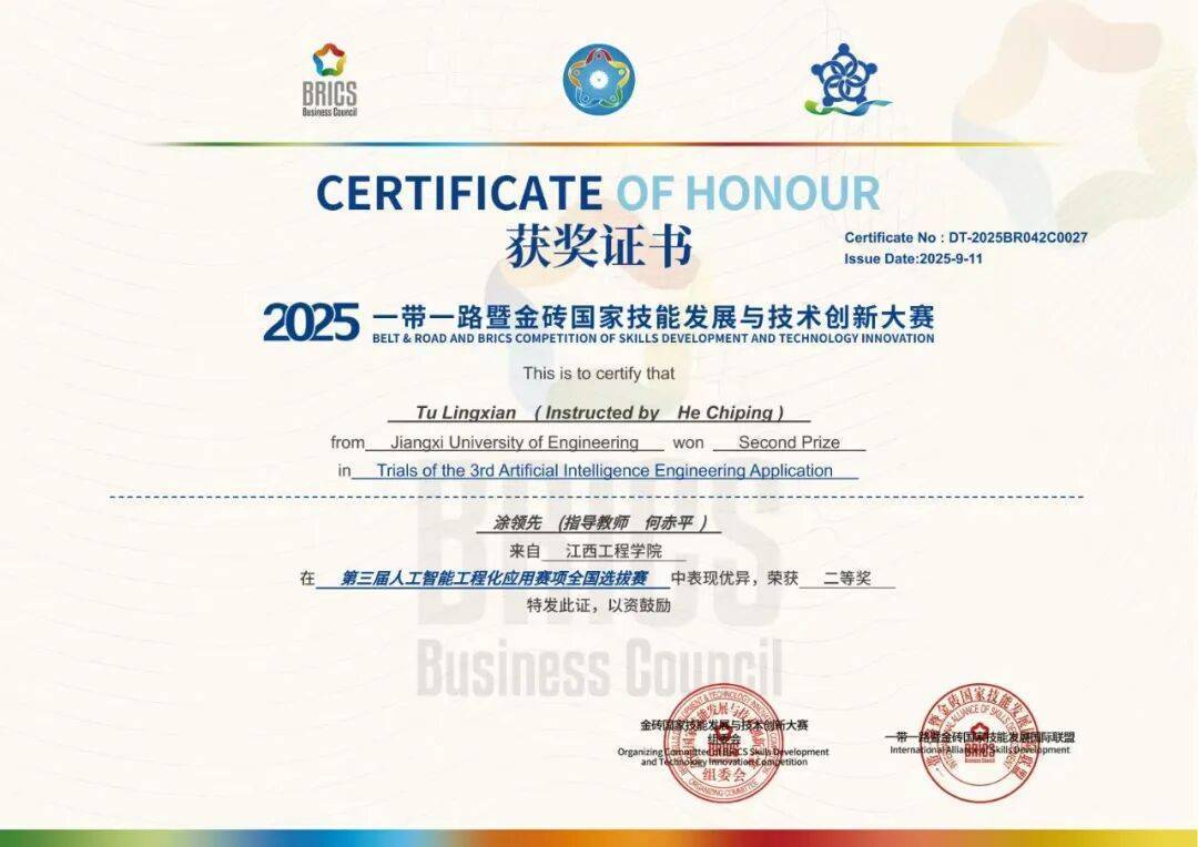 近日,2025“一帶一路”暨金磚國家技能發(fā)展與技術(shù)創(chuàng)新大賽——第三屆人工智能工程化應(yīng)用賽項(xiàng)(工程實(shí)踐)全國選拔賽中,我校人工智能與數(shù)據(jù)科學(xué)學(xué)院派出的兩支隊(duì)伍全員獲獎(jiǎng),分別榮獲二等獎(jiǎng)和三等獎(jiǎng),充分展現(xiàn)了學(xué)校在AI工程化人才方面的培養(yǎng)成效。