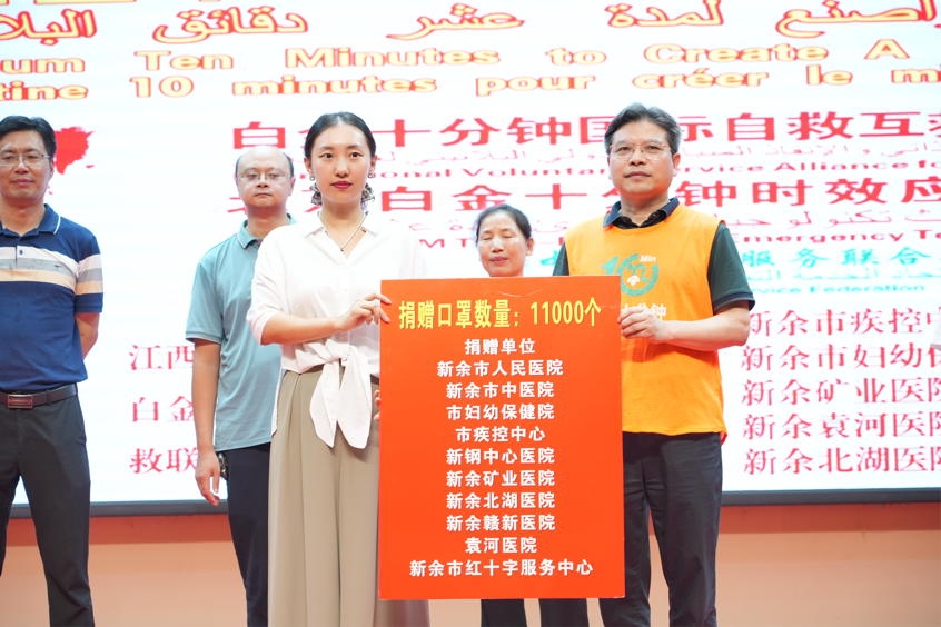 在熱烈的掌聲中,新余市衛(wèi)健委醫(yī)政科科長(zhǎng)劉鵬發(fā)表講話并宣布:“健康新余行動(dòng)暨第十六屆‘急救白金十分鐘——全國(guó)(國(guó)際)自救互救日’志愿服務(wù)活動(dòng)正式開(kāi)始!”儀式還包括了由新余市人民醫(yī)院向我校進(jìn)行的口罩捐贈(zèng),以及為部分留學(xué)生代表頒發(fā)志愿服務(wù)證書(shū)、為2025年度“白金十分鐘”優(yōu)秀集體與個(gè)人頒獎(jiǎng)等環(huán)節(jié)。我校學(xué)生與市人民醫(yī)院共同準(zhǔn)備的舞蹈節(jié)目《白金十分鐘》為活動(dòng)增添了活力與溫情。