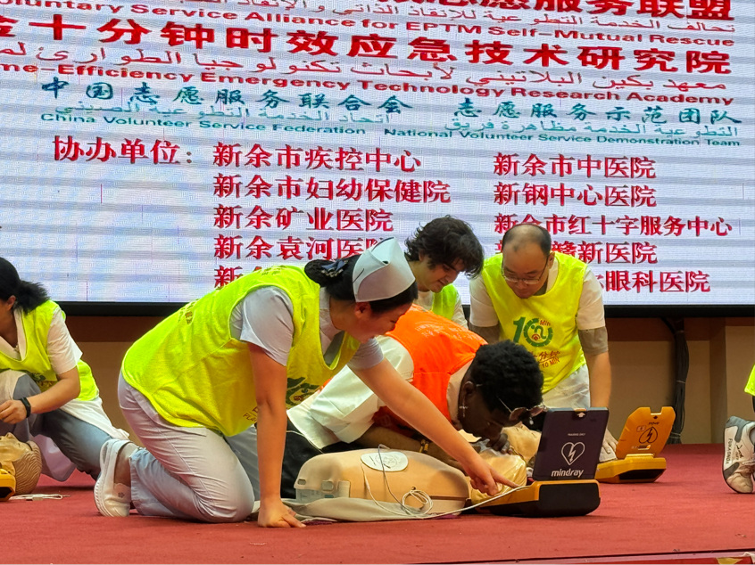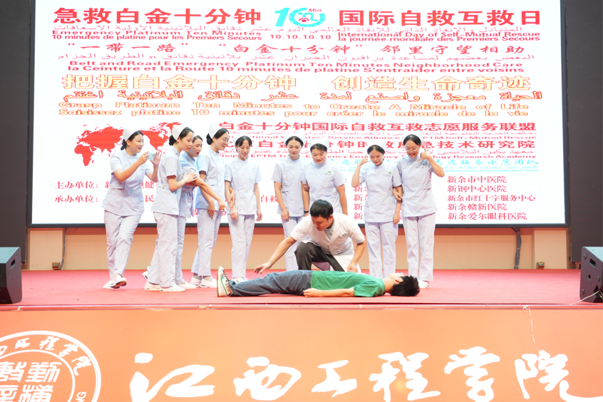 2025年10月9日下午,由新余市衛(wèi)生健康委員會(huì)與學(xué)校聯(lián)合主辦、新余市人民醫(yī)院及白金十分鐘全國(guó)自救互救志愿服務(wù)聯(lián)盟新余團(tuán)隊(duì)共同承辦的健康新余行動(dòng)暨第十六屆“急救白金十分鐘——全國(guó)(國(guó)際)自救互救日”志愿服務(wù)聯(lián)盟活動(dòng)在學(xué)校天工校區(qū)體育館隆重舉行。本次活動(dòng)嚴(yán)格遵循活動(dòng)方案,以“排查身邊災(zāi)害隱患,做好自救互救”為主題,旨在向大眾宣傳“白金十分鐘”急救規(guī)律,普及急救知識(shí)與技能。來(lái)自我校34個(gè)國(guó)家的近200名國(guó)際留學(xué)生與本地志愿者、醫(yī)護(hù)人員一同參與了這場(chǎng)生命教育實(shí)踐課。