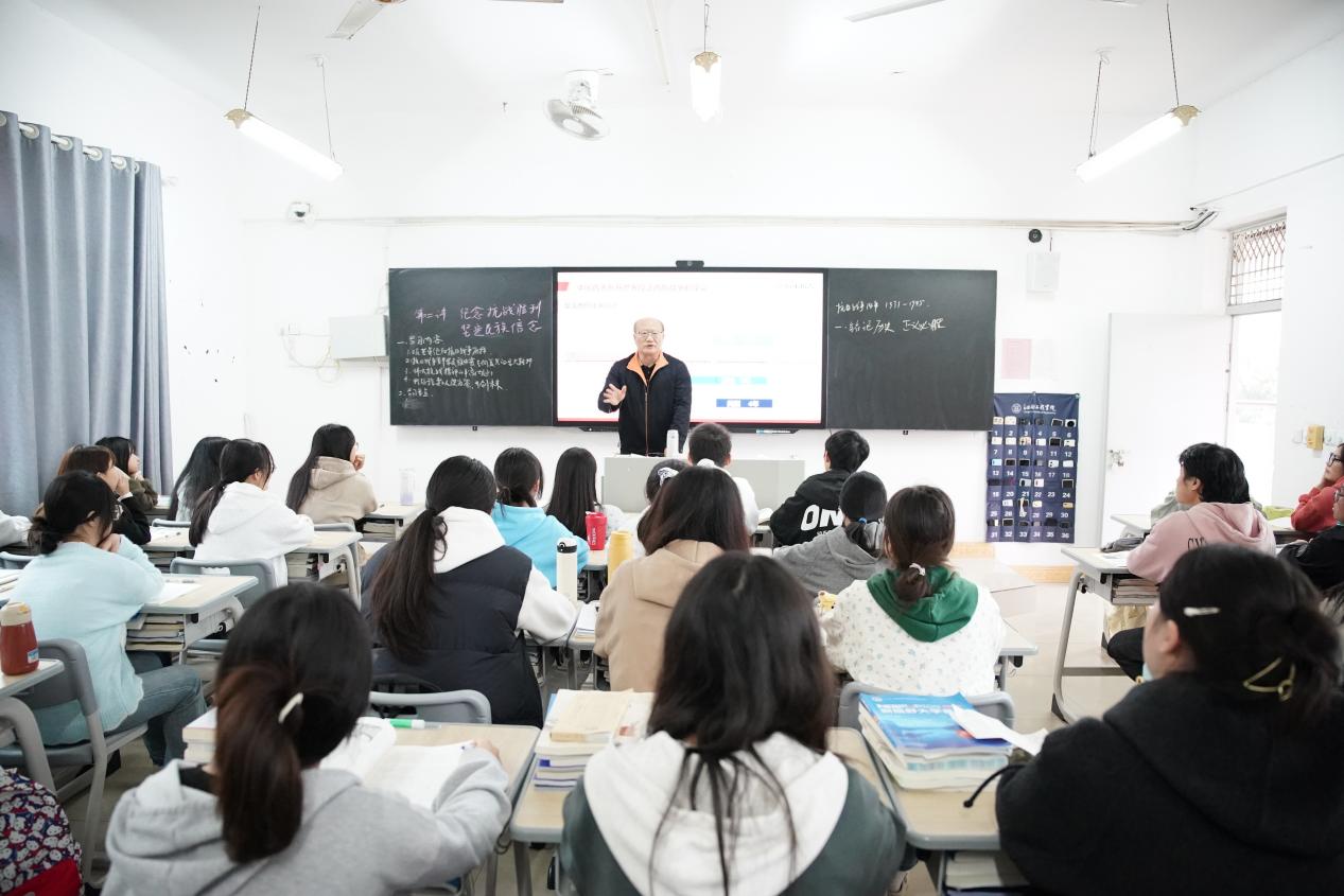 為認真學(xué)習(xí)貫徹黨的二十屆四中全會精神,引導(dǎo)廣大學(xué)生銘記歷史、傳承精神、明確使命擔(dān)當(dāng),11月10日,校黨委副書記、校長劉新躍走進2024級貿(mào)易經(jīng)濟本科1班課堂,以“紀(jì)念抗戰(zhàn)勝利 堅定民族信念”為主題講授形勢與政策課,圍繞抗戰(zhàn)歷史、民族精神與民族信念展開深入闡釋,帶領(lǐng)同學(xué)們在歷史與現(xiàn)實的對話中汲取奮進力量。