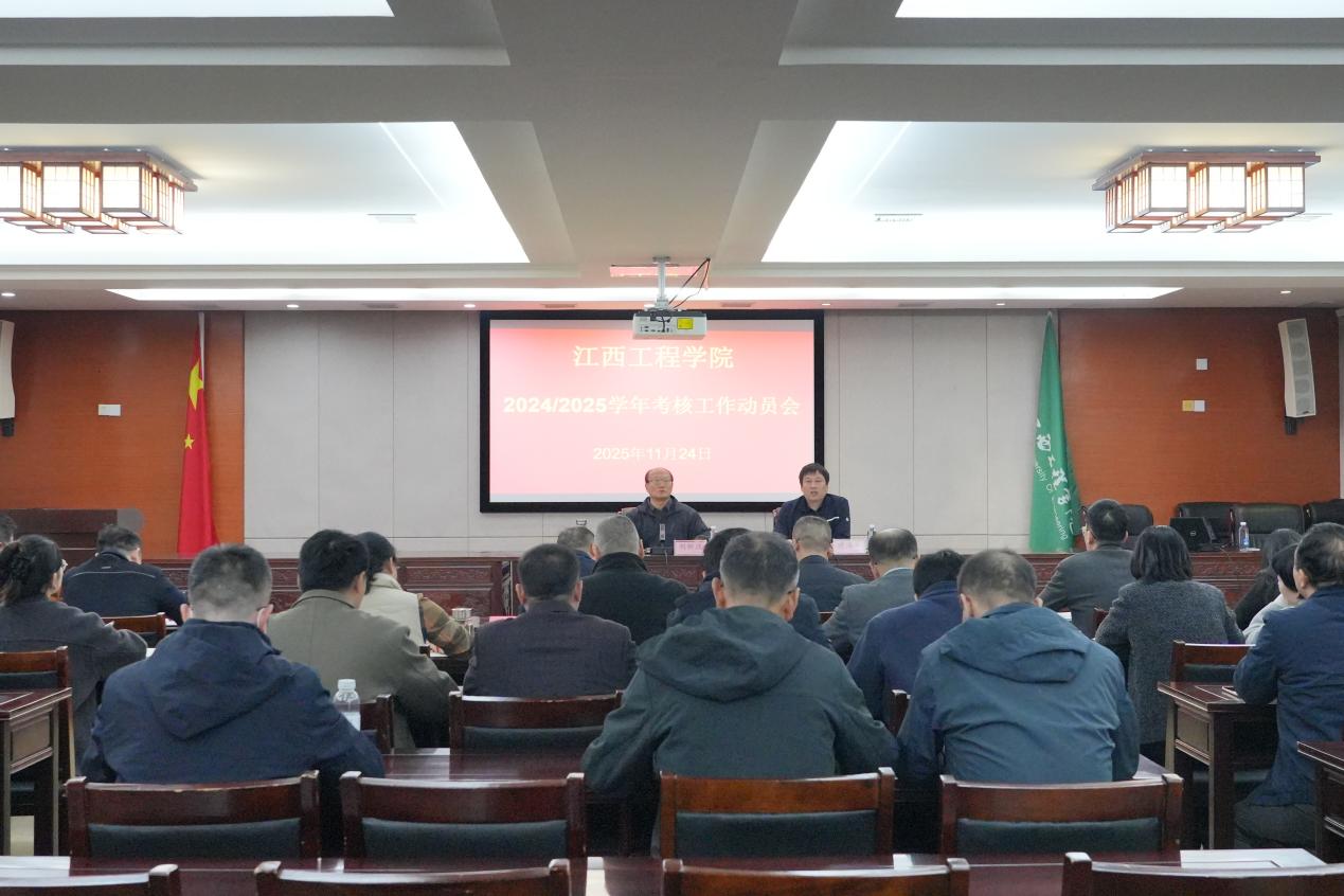 2025年11月24日下午,江西工程學院2024-2025學年考核工作動員會在行政樓三樓會議室召開。會議緊扣學校深化內(nèi)涵建設、迎接本科教學工作合格評估目標任務,全面部署本學年考核工作。黨委副書記、校長劉新躍出席會議并講話,黨委委員、副校長黃海軍主持會議并部署相關(guān)工作,各二級學院院長、書記及職能部門負責人參加會議。