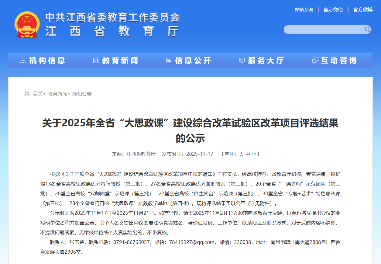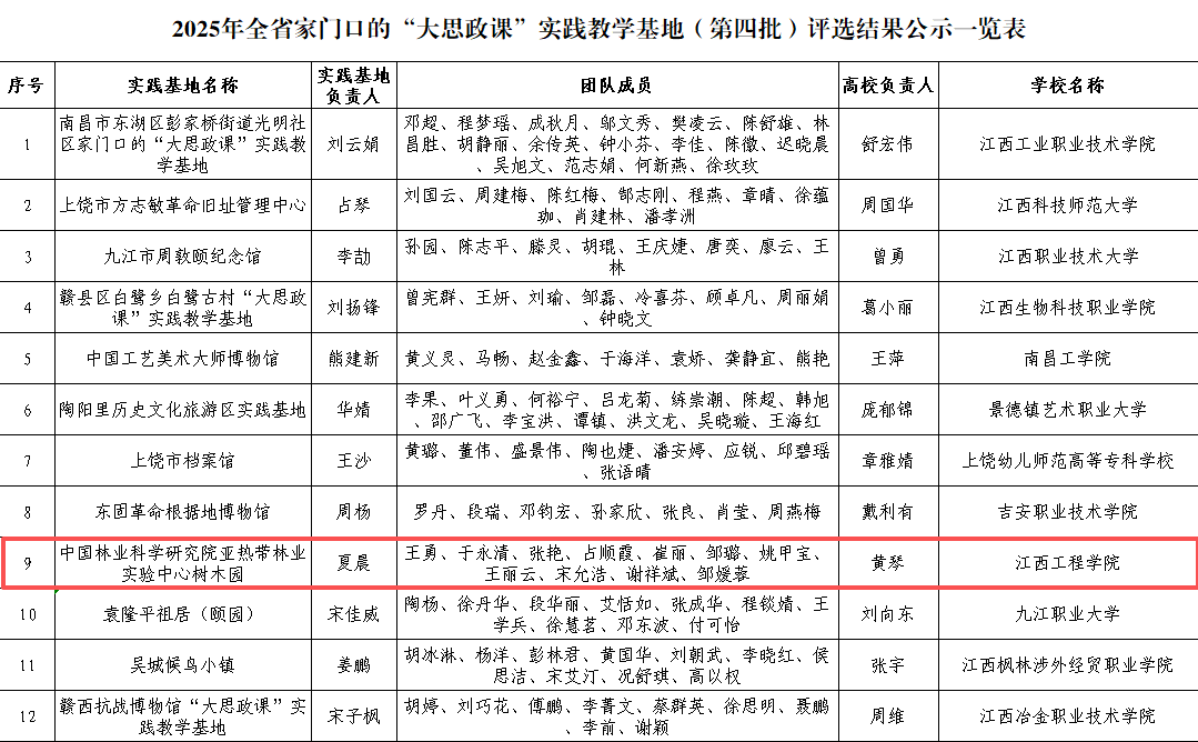 2025年11月17日-21日,江西省教育廳公示了2025年全省“大思政課”建設(shè)綜合改革試驗區(qū)改革項目評選結(jié)果,江西工程學(xué)院與亞林中心共同申報的實踐教學(xué)基地成功入選全省家門口的“大思政課”實踐教學(xué)基地(第四批)公示名單。
