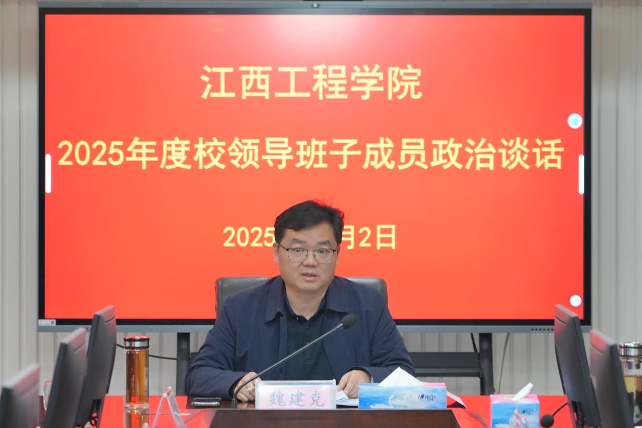 為進(jìn)一步增強干部廉潔自律意識與履職擔(dān)當(dāng)能力,推動學(xué)校政治生態(tài)持續(xù)向上向好,根據(jù)《省委教育工委關(guān)于深入開展2025年度政治談話進(jìn)一步加強對“一把手”和領(lǐng)導(dǎo)班子監(jiān)督的工作方案》要求,12月2日上午,江西工程學(xué)院2025年度校領(lǐng)導(dǎo)班子成員政治談話會在行政樓七樓會議室召開。校黨委書記、督導(dǎo)專員魏建克主持會議并講話。