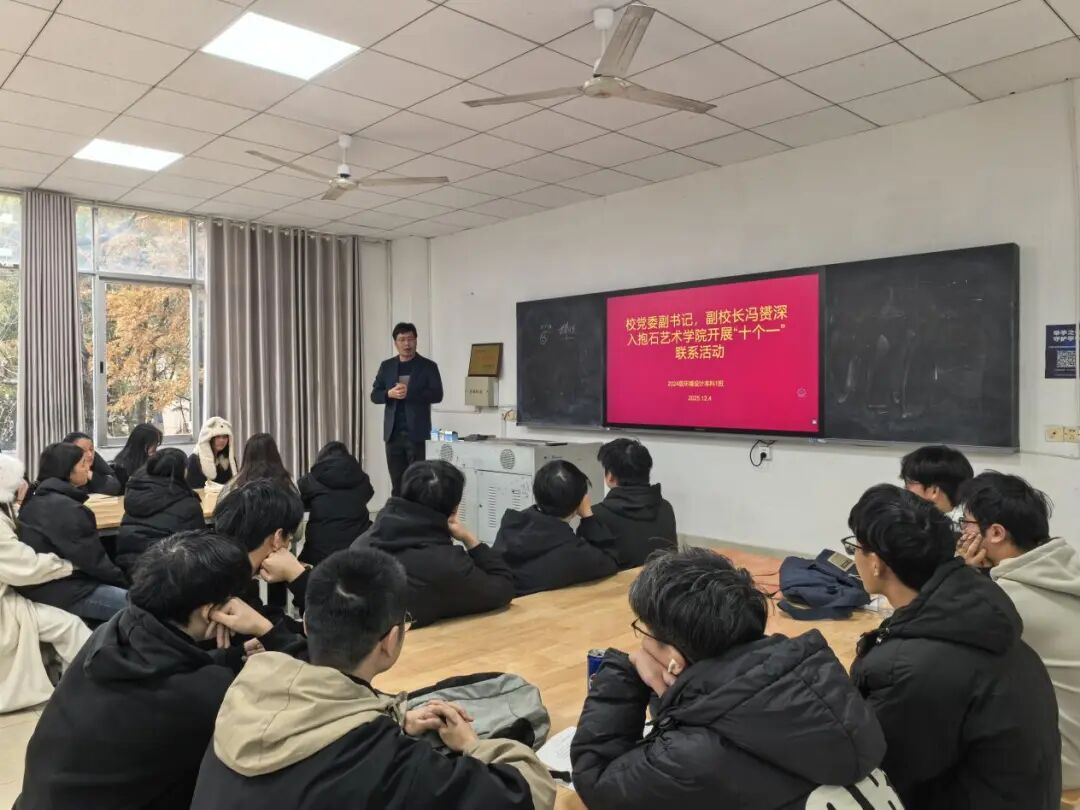 12月4日,校黨委副書記、副校長馮赟深入抱石藝術(shù)學(xué)院,開展黨員領(lǐng)導(dǎo)干部“十個一”聯(lián)系活動。與師生面對面交流,傾聽心聲、解決困難、指導(dǎo)發(fā)展。