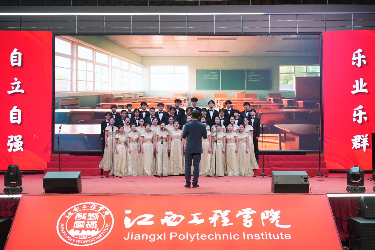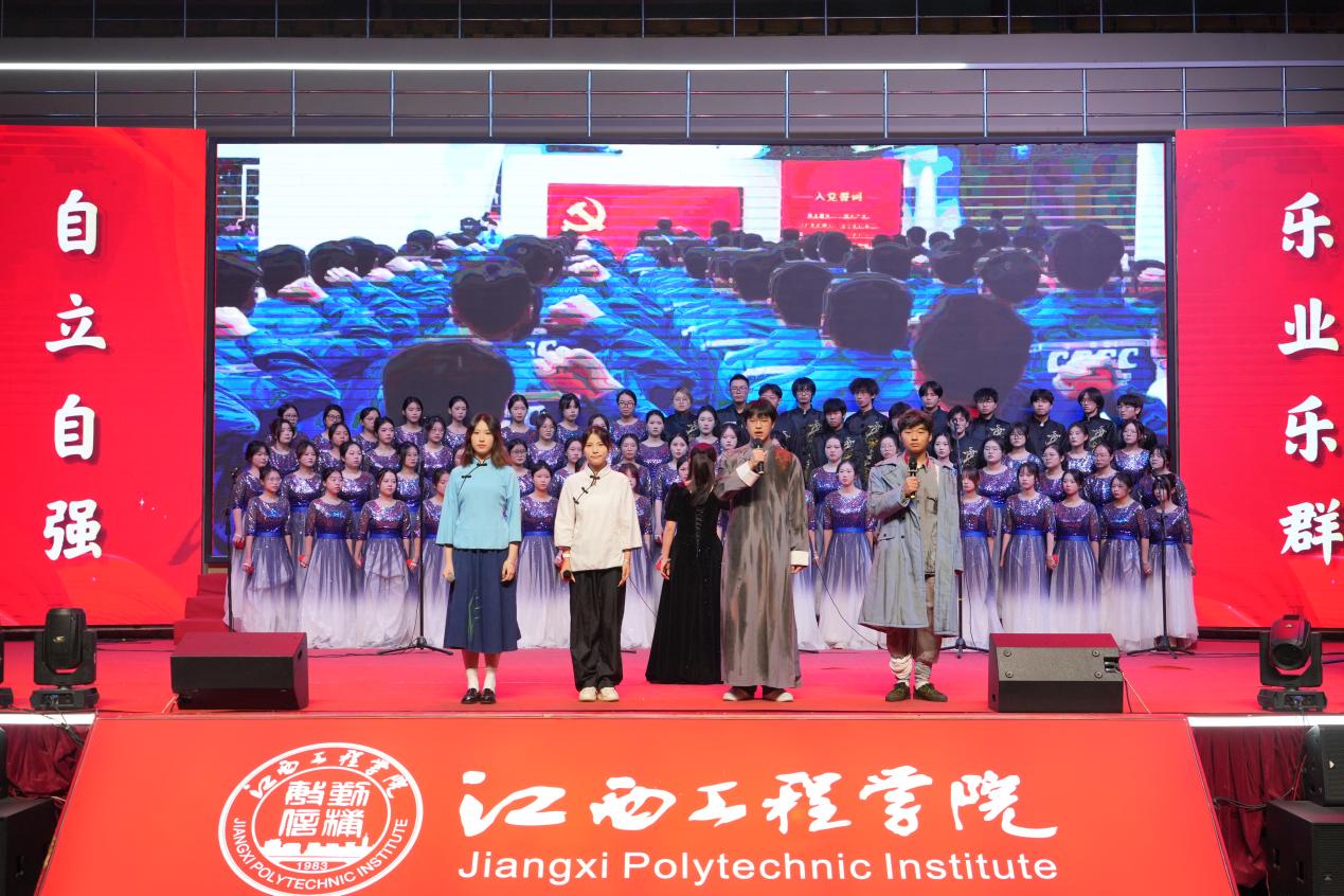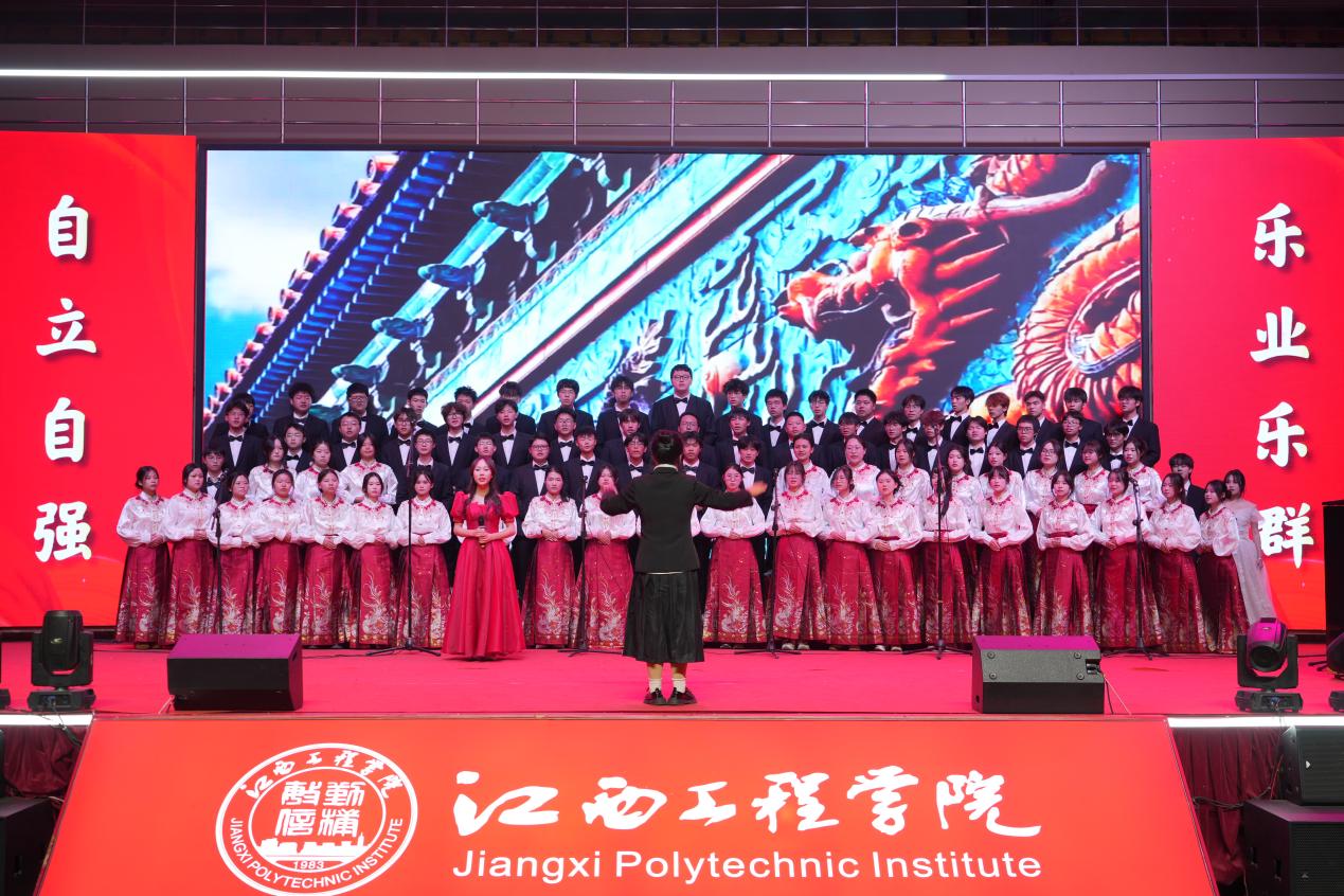 來(lái)自7個(gè)學(xué)院師生依次登臺(tái),用飽滿的熱情和激昂的歌聲,將現(xiàn)場(chǎng)觀眾的思緒帶回到九十年前那段風(fēng)雨如晦的歲月?!段覀冏咴诖舐飞稀贰洞笾袊?guó)》等一首首鐫刻著時(shí)代印記的經(jīng)典曲目,唱出了當(dāng)年愛國(guó)學(xué)子對(duì)民族存亡的吶喊與抗?fàn)?;而《萬(wàn)疆》《如愿》等新時(shí)代的主旋律,則深情抒發(fā)了江工青年對(duì)黨、對(duì)祖國(guó)、對(duì)人民的赤誠(chéng)與熱愛。各參賽隊(duì)伍在演唱中融入了誦讀紅色家書、舞蹈、情景表演等多種藝術(shù)形式,為經(jīng)典作品注入了嶄新的時(shí)代內(nèi)涵,讓“一二·九”精神在沉浸式美育思政實(shí)踐中跨越時(shí)空、薪火相傳。