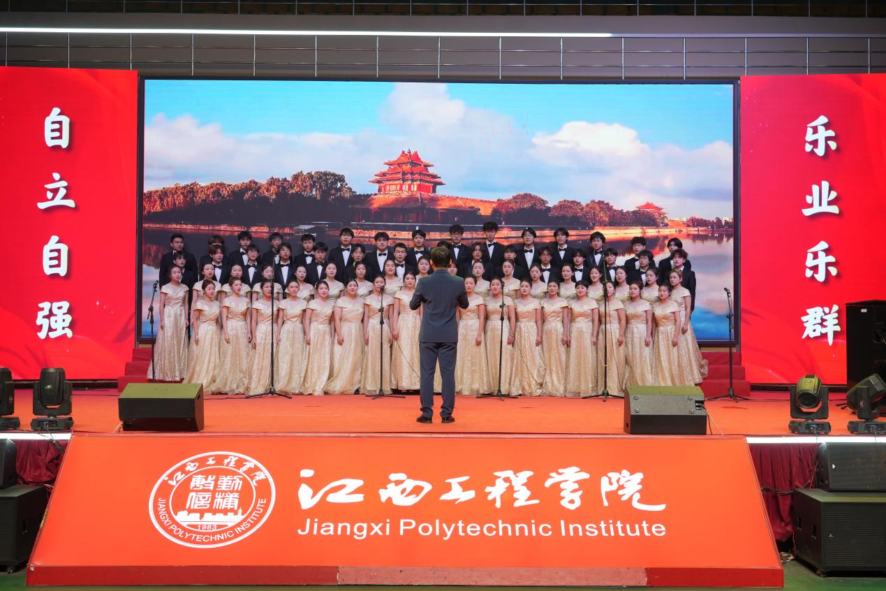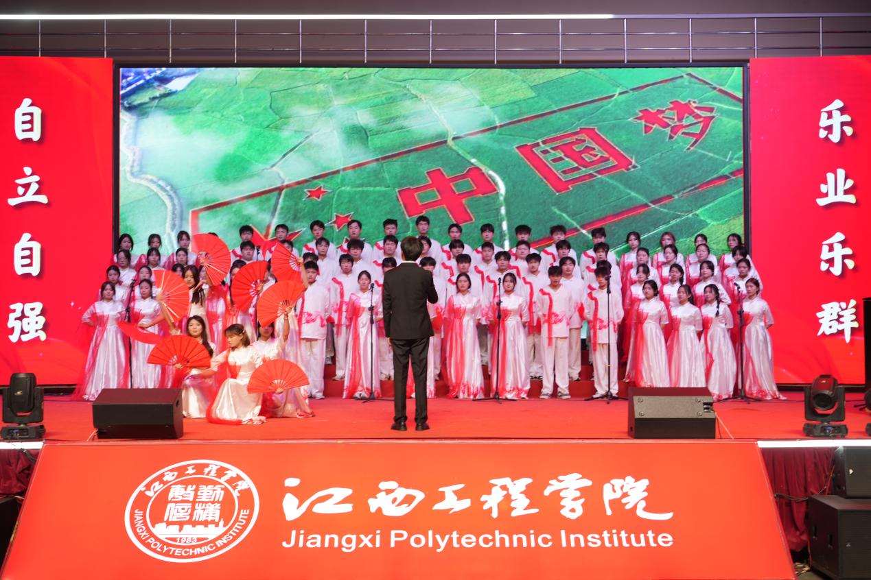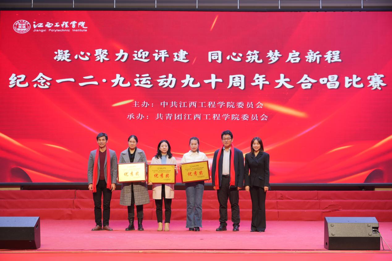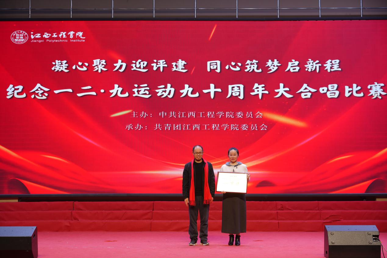 來(lái)自7個(gè)學(xué)院師生依次登臺(tái),用飽滿的熱情和激昂的歌聲,將現(xiàn)場(chǎng)觀眾的思緒帶回到九十年前那段風(fēng)雨如晦的歲月?!段覀冏咴诖舐飞稀贰洞笾袊?guó)》等一首首鐫刻著時(shí)代印記的經(jīng)典曲目,唱出了當(dāng)年愛國(guó)學(xué)子對(duì)民族存亡的吶喊與抗?fàn)?;而《萬(wàn)疆》《如愿》等新時(shí)代的主旋律,則深情抒發(fā)了江工青年對(duì)黨、對(duì)祖國(guó)、對(duì)人民的赤誠(chéng)與熱愛。各參賽隊(duì)伍在演唱中融入了誦讀紅色家書、舞蹈、情景表演等多種藝術(shù)形式,為經(jīng)典作品注入了嶄新的時(shí)代內(nèi)涵,讓“一二·九”精神在沉浸式美育思政實(shí)踐中跨越時(shí)空、薪火相傳。