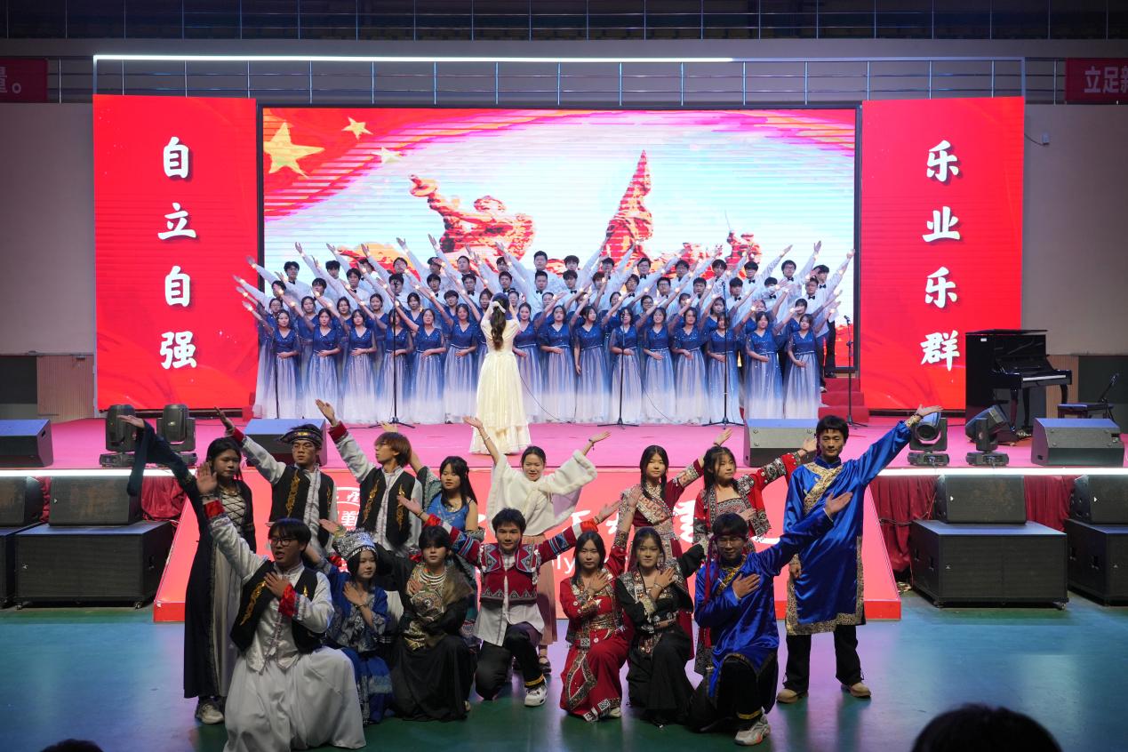 當(dāng)《相親相愛》熟悉的旋律響起,人工智能與數(shù)據(jù)科學(xué)學(xué)院少數(shù)民族學(xué)生手拉手走上舞臺(tái),臉上洋溢著幸福的笑容,歌聲中充滿了對(duì)民族團(tuán)結(jié)的珍視和對(duì)美好未來(lái)的憧憬。