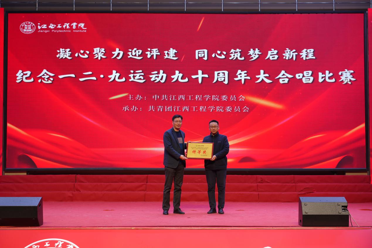 各參賽隊(duì)的精彩表演,贏得了在場(chǎng)觀眾的陣陣掌聲。經(jīng)過(guò)激烈角逐,抱石藝術(shù)學(xué)院摘得比賽特等獎(jiǎng)、經(jīng)濟(jì)管理學(xué)院榮獲一等獎(jiǎng)、智能制造與建造學(xué)院榮獲二等獎(jiǎng)、語(yǔ)言與傳播學(xué)院(國(guó)際教育學(xué)院)榮獲三等獎(jiǎng),電子信息工程學(xué)院、人工智能與數(shù)據(jù)科學(xué)學(xué)院、智慧產(chǎn)業(yè)學(xué)院榮獲優(yōu)秀獎(jiǎng)。評(píng)委嘉賓為獲獎(jiǎng)隊(duì)伍代表頒獎(jiǎng)并合影留念。