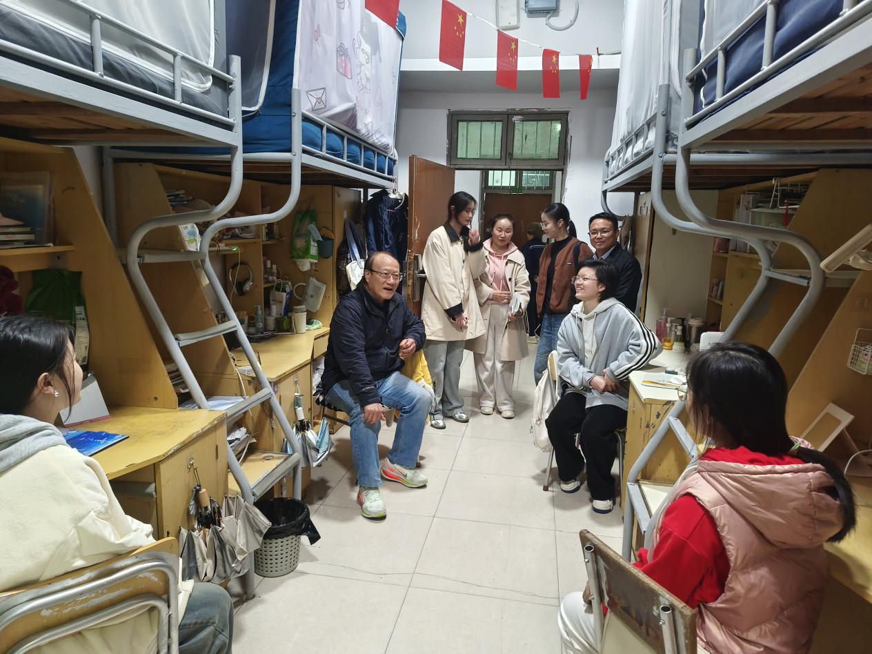 在宿舍聯(lián)系中,劉新躍實地察看14棟學(xué)生住宿環(huán)境,詳細(xì)詢問同學(xué)們思想學(xué)習(xí)生活狀況,認(rèn)真征集對宿舍條件、后勤保障等工作的意見建議。在14棟D214宿舍,他與學(xué)生暢談家鄉(xiāng)變化、分享假期見聞,細(xì)致了解大家的階段性目標(biāo)規(guī)劃,勉勵同學(xué)們珍惜學(xué)習(xí)時光,與室友互幫互助、和諧相處,以飽滿熱情投入學(xué)習(xí)生活,實現(xiàn)自我提升。
