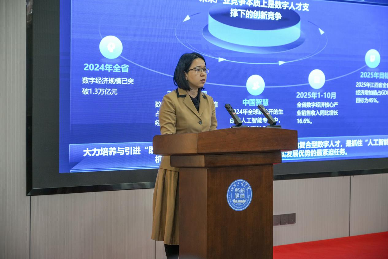 新余市仙女湖區(qū)委書記潘麗云在大會(huì)上致辭,他充分肯定江西工程學(xué)院在服務(wù)地方產(chǎn)業(yè)、科技創(chuàng)新和人才培養(yǎng)中的重要作用,強(qiáng)調(diào)深化產(chǎn)教融合是區(qū)域經(jīng)濟(jì)轉(zhuǎn)型升級與新質(zhì)生產(chǎn)力培育的關(guān)鍵,區(qū)委、區(qū)政府將優(yōu)化政策環(huán)境、搭建高能級平臺(tái),支持校企在人才共育、技術(shù)研發(fā)、成果轉(zhuǎn)化等領(lǐng)域深度合作,助力地方高質(zhì)量發(fā)展,彰顯校地協(xié)同共生共識(shí)。