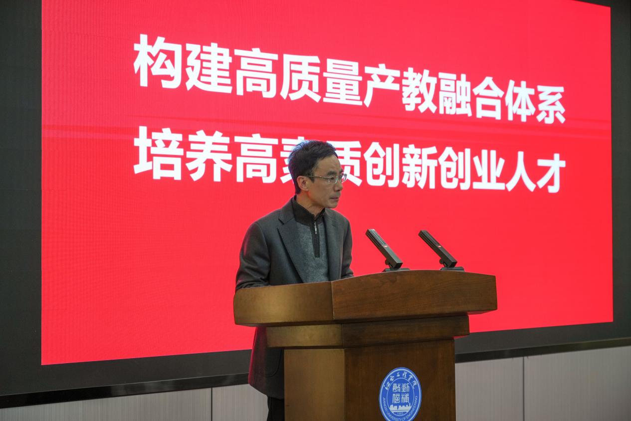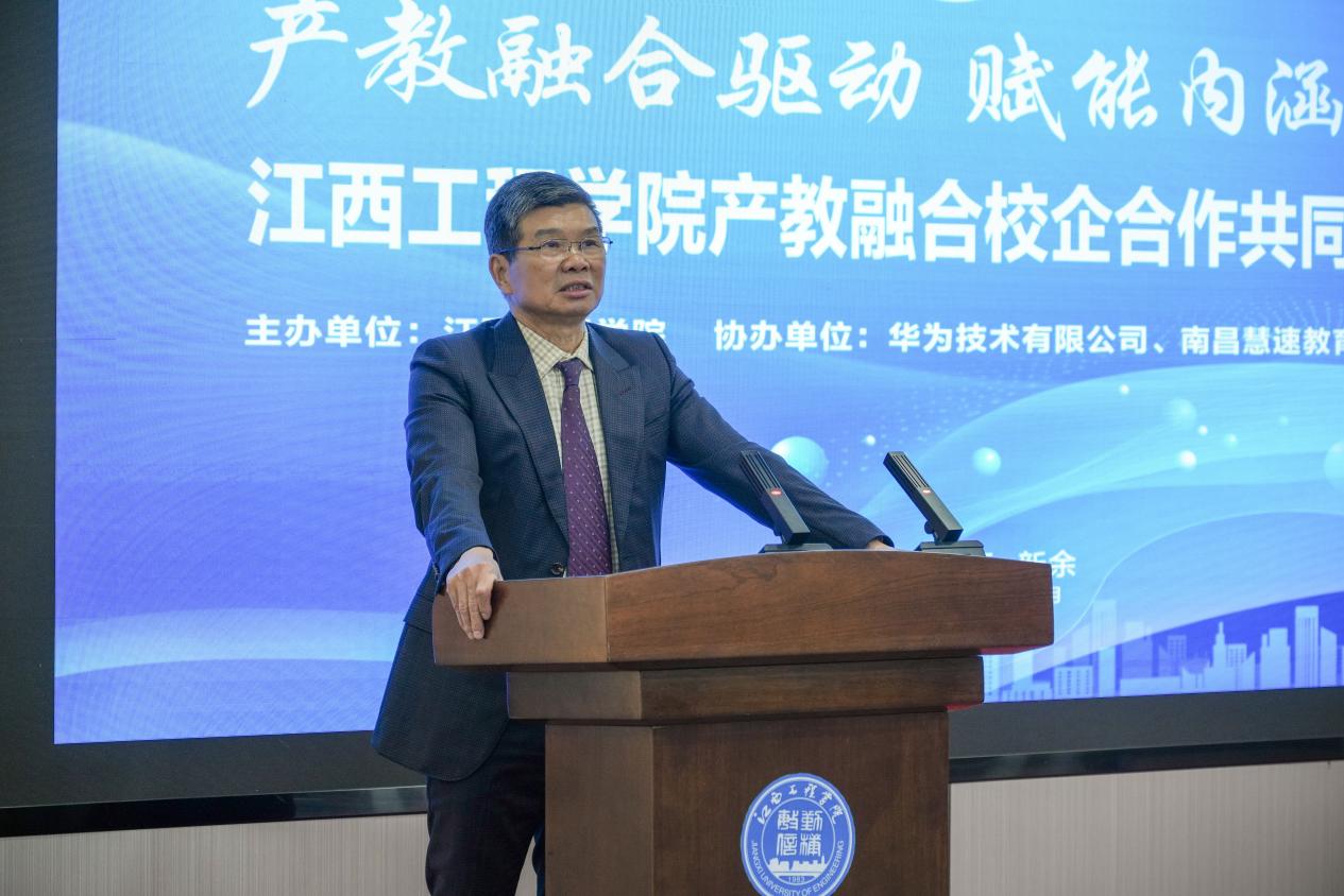 江西工程學(xué)院黨委副書記、校長劉新躍致歡迎辭,向參會(huì)嘉賓及支持學(xué)校發(fā)展的各界人士表示感謝。他指出,本次大會(huì)是校企合作的總結(jié)與新起點(diǎn),當(dāng)前發(fā)展新質(zhì)生產(chǎn)力需打通“四鏈”銜接堵點(diǎn),產(chǎn)教融合是關(guān)鍵路徑,更是學(xué)校立德樹人、服務(wù)區(qū)域發(fā)展的重要使命。劉新躍明確學(xué)校深化產(chǎn)教融合三大方向:一是改革人才共育機(jī)制,構(gòu)建“入學(xué)即入企、畢業(yè)即就業(yè)”一體化模式;二是強(qiáng)化創(chuàng)新平臺(tái)共建共享,加速科研成果轉(zhuǎn)化,拓展實(shí)踐基地;三是健全長效合作機(jī)制,精準(zhǔn)匹配企業(yè)需求,推動(dòng)校企合作從“形式握手”邁向“實(shí)質(zhì)牽手”,實(shí)現(xiàn)雙向共贏。