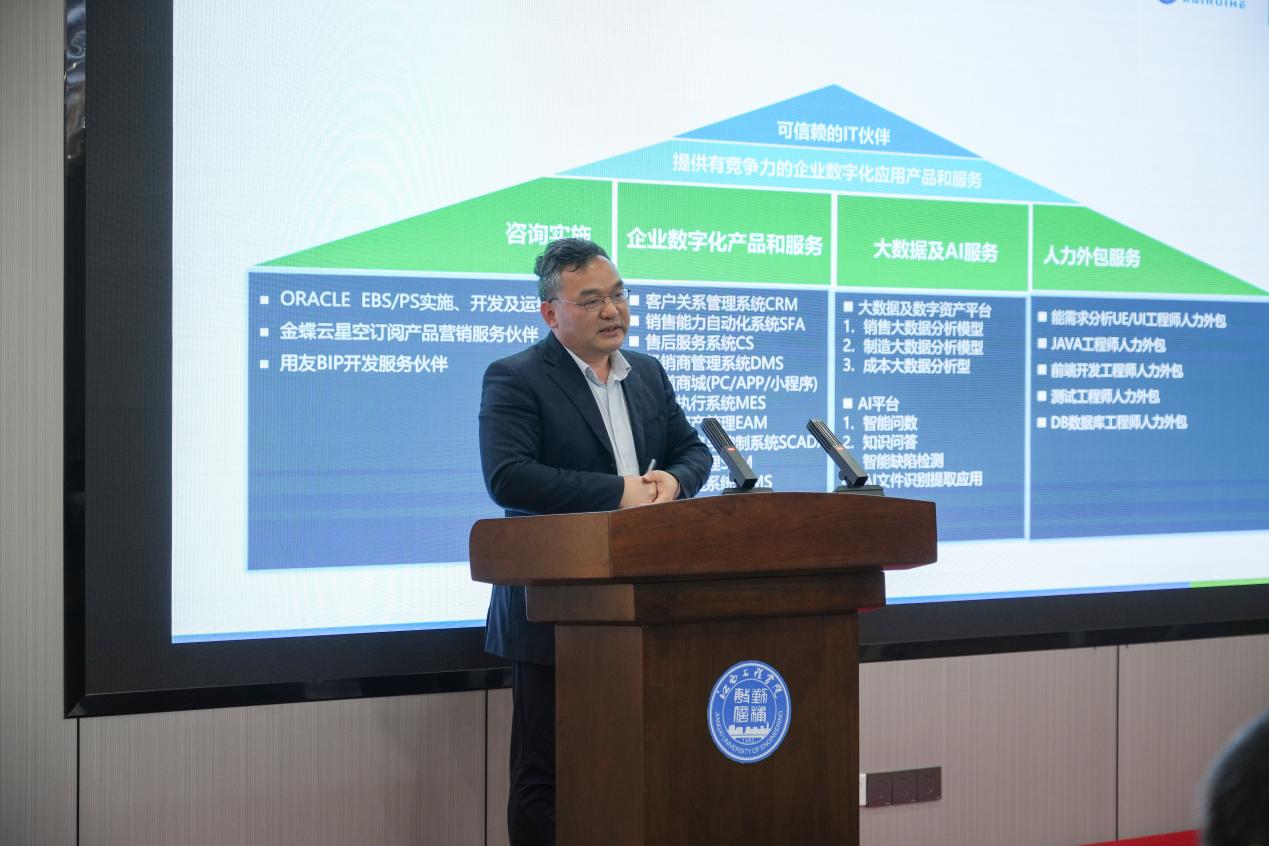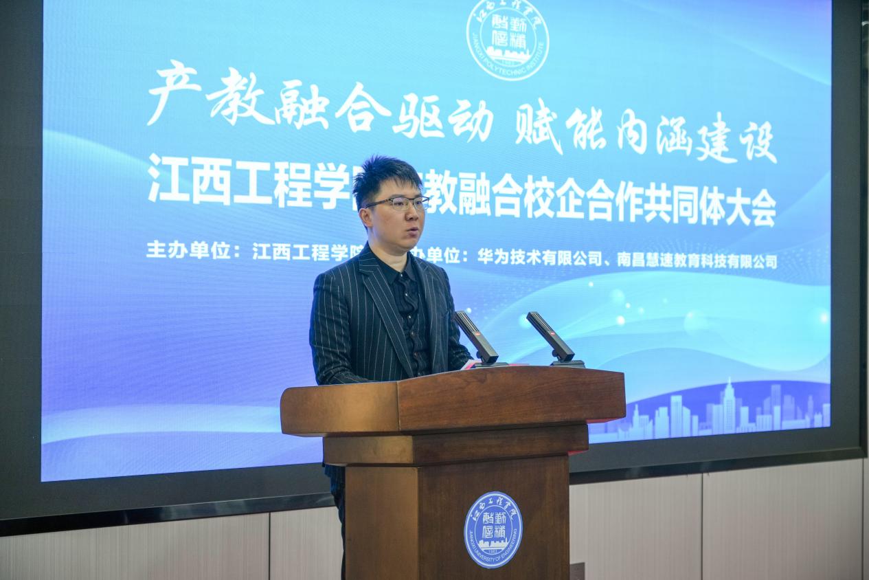 在企業(yè)代表發(fā)言環(huán)節(jié),六位來自不同行業(yè)的企業(yè)負(fù)責(zé)人結(jié)合自身發(fā)展實(shí)際,分享合作經(jīng)驗(yàn)、表達(dá)合作期待。中國移動(dòng)通信集團(tuán)江西有限公司新余分公司總經(jīng)理黃瑋表示,公司正深入推進(jìn)數(shù)字化轉(zhuǎn)型,急需復(fù)合型信息人才,期待與學(xué)校在5G+、物聯(lián)網(wǎng)、大數(shù)據(jù)等領(lǐng)域開展定向培養(yǎng)與項(xiàng)目研發(fā);新余市數(shù)字產(chǎn)業(yè)投資發(fā)展有限公司黨委委員、副總經(jīng)理張小紅介紹了公司在智慧城市、數(shù)字政務(wù)領(lǐng)域的布局,希望與學(xué)校共建實(shí)訓(xùn)基地,深化數(shù)據(jù)治理與人工智能應(yīng)用合作;華為技術(shù)有限公司江西政企服務(wù)部部長徐洪國強(qiáng)調(diào)了生態(tài)合作的重要性,提出將在師資培訓(xùn)、認(rèn)證體系、競賽支持等方面給予學(xué)校資源傾斜。